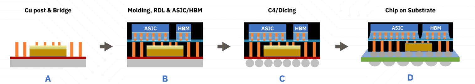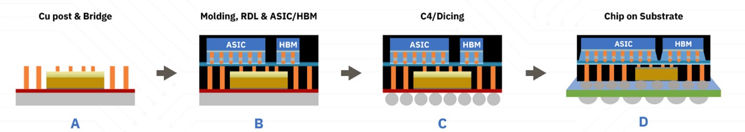 Also has own CoWoS-like technology with FOCoS (CoWoS-R like) and FOCoS bridge (CoWoS-L like)